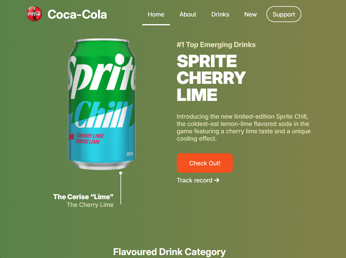 A promotional webpage showcasing Coca-Cola’s cold drink collection with a modern, vibrant, and responsive design.